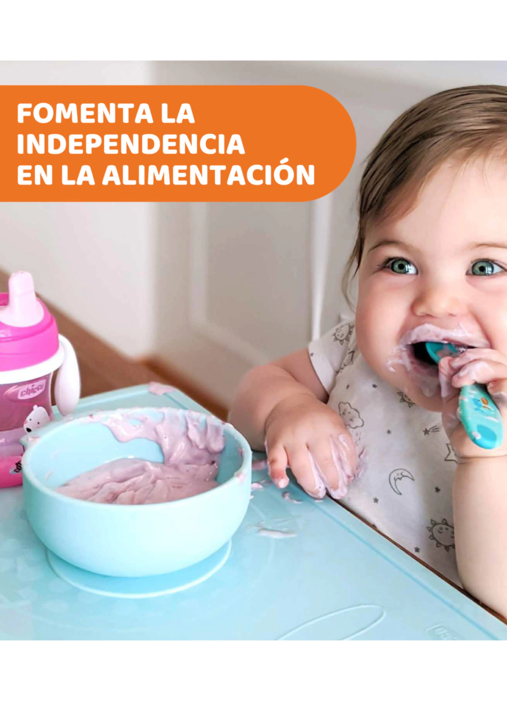 - Son antideslizantes gracias a su base de ventosa que funciona como un chupón que permite adherirse a superficies como la mesita del bebé, lisas y limpias. Esto es una super ayuda a la hora de dar de comer a los peques porque tienen la tendencia de agarrar cualquier objeto y a probar a ver cómo cae hasta el suelo. Y con la ventosa lo van a intentar pero no conseguir tirarlo!