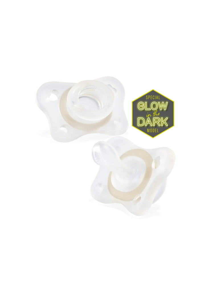 SUAVE Y DELICADO: el chupete Mini Soft de Chicco es completamente suave y delicado en la cara del bebé, cómodo incluso a la hora de acostarse. BRILLA EN LA OSCURIDAD