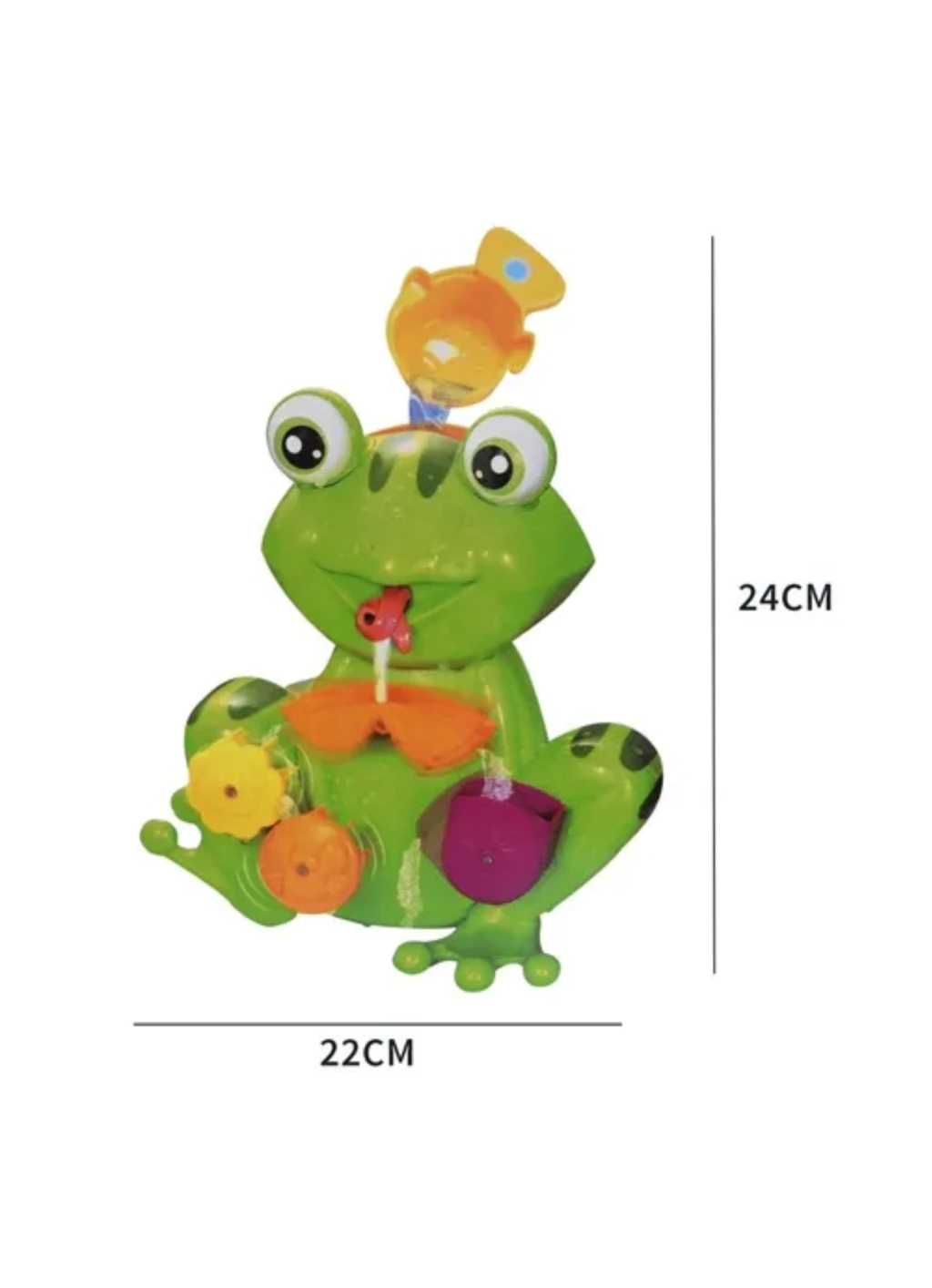 - Diseño Atractivo: Con su colorida forma de rana y un tamaño de 24 cm, capturará la atención de los más pequeños, manteniéndolos fascinados durante el baño.