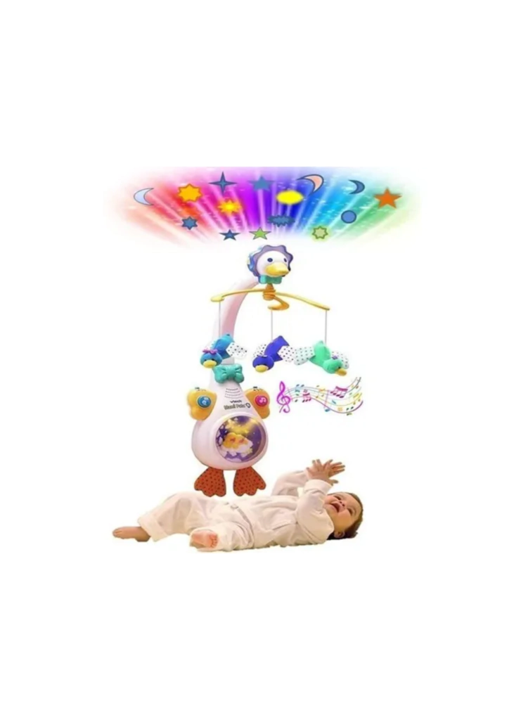 4 en 1: carrusel, proyector, panel luminoso y lámpara musical giratoria.