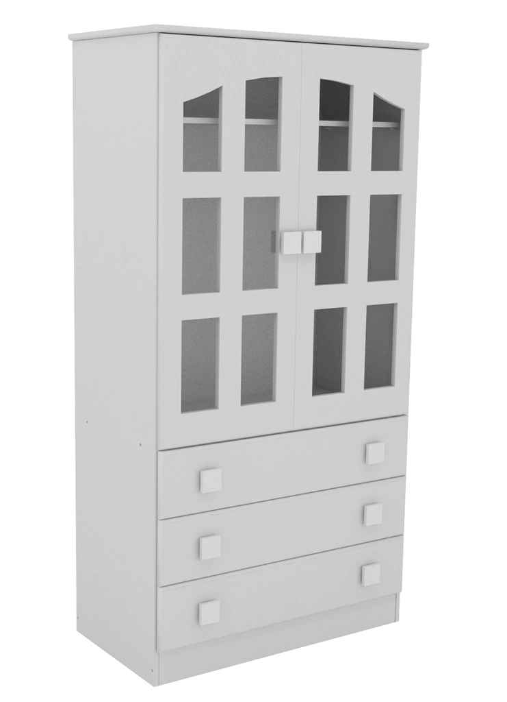 Ropero de 3 cajones con guias metalicas y 2 puertas con vidrio repartido de primera calidad - Linea Geza