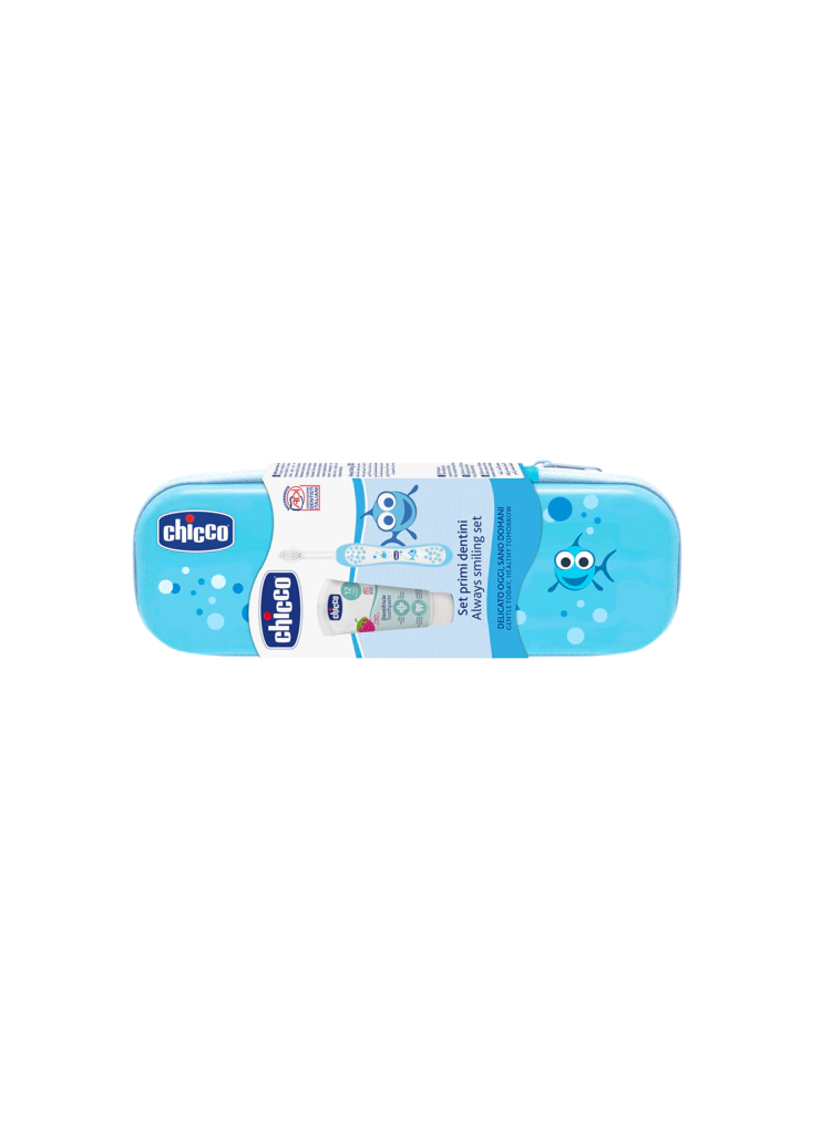 Un práctico set ideal para que los niños mantengan su higiene bucal fuera de casa. Contiene un cepillo de dientes con su capuchón y pasta de dientes con flúor sabor fresa 12+.